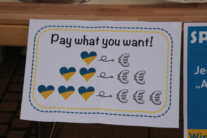 Ludwigsburg.| Der Kuchen-, Suppen- und Grußkartenverkaufsstand der beruflichen Schulen in Ludwigsburg am vergangenen Samstag auf dem Ludwigsburger Wochenmarkt zugunsten der Ukraine-Hilfe der „Aktion Deutschland Hilft“ war ein voller Erfolg: mehr als 2500 € für Menschen, die durch den Krieg in der Ukraine in Not geraten sind, wurden erzielt.