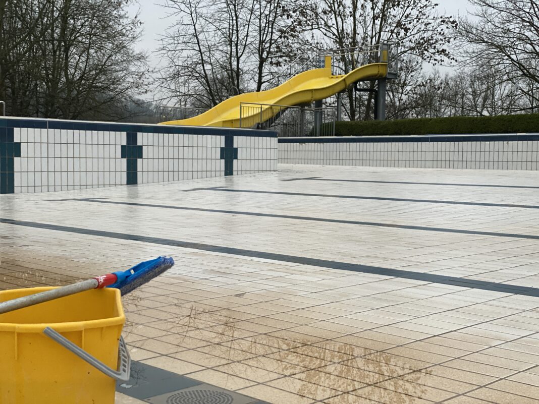 Aktuell wird das Familienbad im Grünen mit Hockdruck auf Hochglanz gebracht. Die drei Becken werden gesäubert, schadhafte Fliesen repariert – rund 1.000 werden jedes Frühjahr getauscht. Kurz vor Bad-Öffnung werden noch die Sanitärbereiche sowie die Wegeplatten vor den Umkleidebereichen und am Kioskbereich gereinigt. Für Menschen mit Behinderung sind eine Toilette und eine Dusche neu gebaut worden, die Duschen für Herren und Damen werden saniert – die Fertigstellung ist für die Saison 2024 geplant. Diese Arbeiten haben keine Auswirkungen auf die Bedürfnisse der Badegäste. Zudem gibt es jetzt insgesamt 120 Wertschließfächer, 50 mehr als im letzten Sommer.
