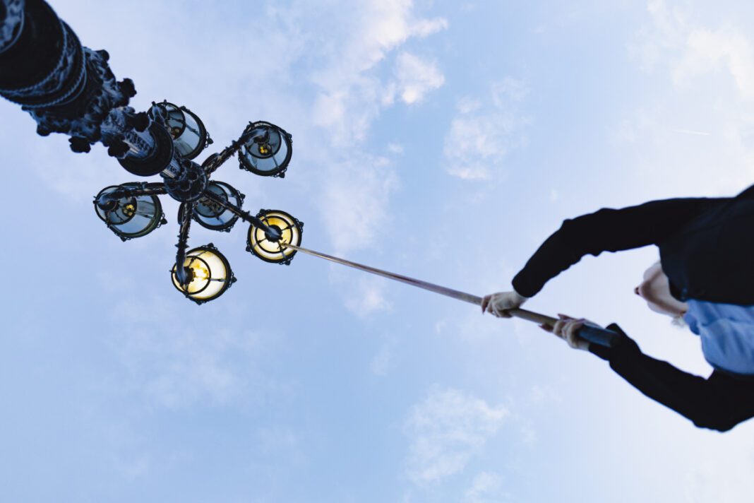 Jeden Abend, wenn die Dämmerung einsetzt, wird vor dem Kurhaus in Baden-Baden ein Stück Tradition gelebt. Dann treten Martina Schneider oder ihre Kollegen der Kur­verwaltung mit einem langen Stab vor die Kurhaustür und zünden die Gaslaternen im Kurpark an. Ganze 42 Stück, verteilt auf sieben elegante Laternenmasten, wollen dann in luftigen Höhen mit dem Stab angemacht werden. „Das geht ganz schön in die Arme“, verrät Laternenanzünderin Martina, „ist aber jedes Mal aufs Neue ein magischer Moment“. Das finden auch die Zuschauerinnen und Zuschauer, die sich regelmäßig für das kleine historische Schauspiel im Kurpark einfinden.