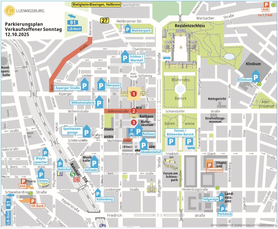 Um den Verkehr auf den anderen Straßen so gering wie möglich zu halten, empfiehlt die Stadtverwaltung, auf die öffentlichen Verkehrsmittel umzusteigen, mit dem Fahrrad oder zu Fuß in die Ludwigsburger Innenstadt zu kommen. Für die Fahrradfahrenden steht wieder ein kostenloser, durch den ADFC bewachter Fahrradparkplatz direkt am Rathaushof zur Verfügung.