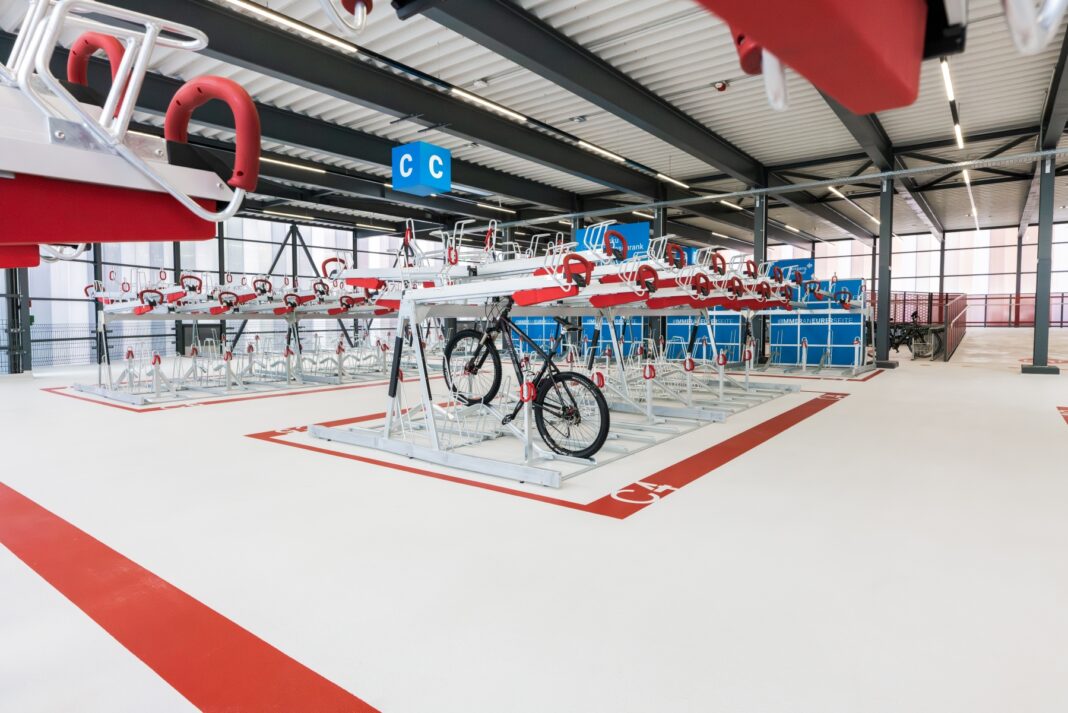 Die neue Radstation Schiller bietet rund 700 Stellplätze – darunter auch Plätze für Sonderfahrräder. Ein 24/7-Zugangssystem und Videoüberwachung sorgen für höchste Sicherheit. Ergänzend stehen Schließfächer mit Ladefunktion für E-Bikes, Umkleidekabinen, Spinde sowie ein Kunden-WC mit Wickeltisch zur Verfügung.