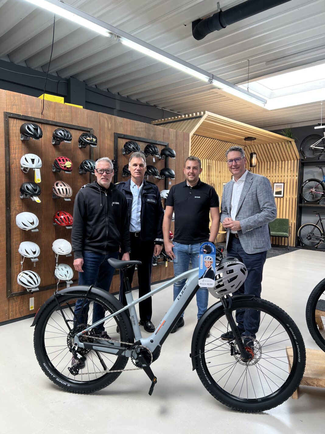 Der Rems-Murr-Kreis hat gemeinsam mit dem Polizeipräsidium Aalen und dem kreisweit aufgestellten Fachgeschäft Bikesnboards eine Kampagne für mehr Sicherheit im Radverkehr gestartet. In den Bikesnboards-Filialen in Waiblingen, Backnang und Schorndorf werden dafür ab sofort Anhänger an Fahrradräder angebracht, die Kundinnen und Kunden im Alltag an das Tragen eines Helms erinnern sollen. Die Kampagne steht unter dem Slogan: „Ein Helm. Ein Leben. Deine Entscheidung.“