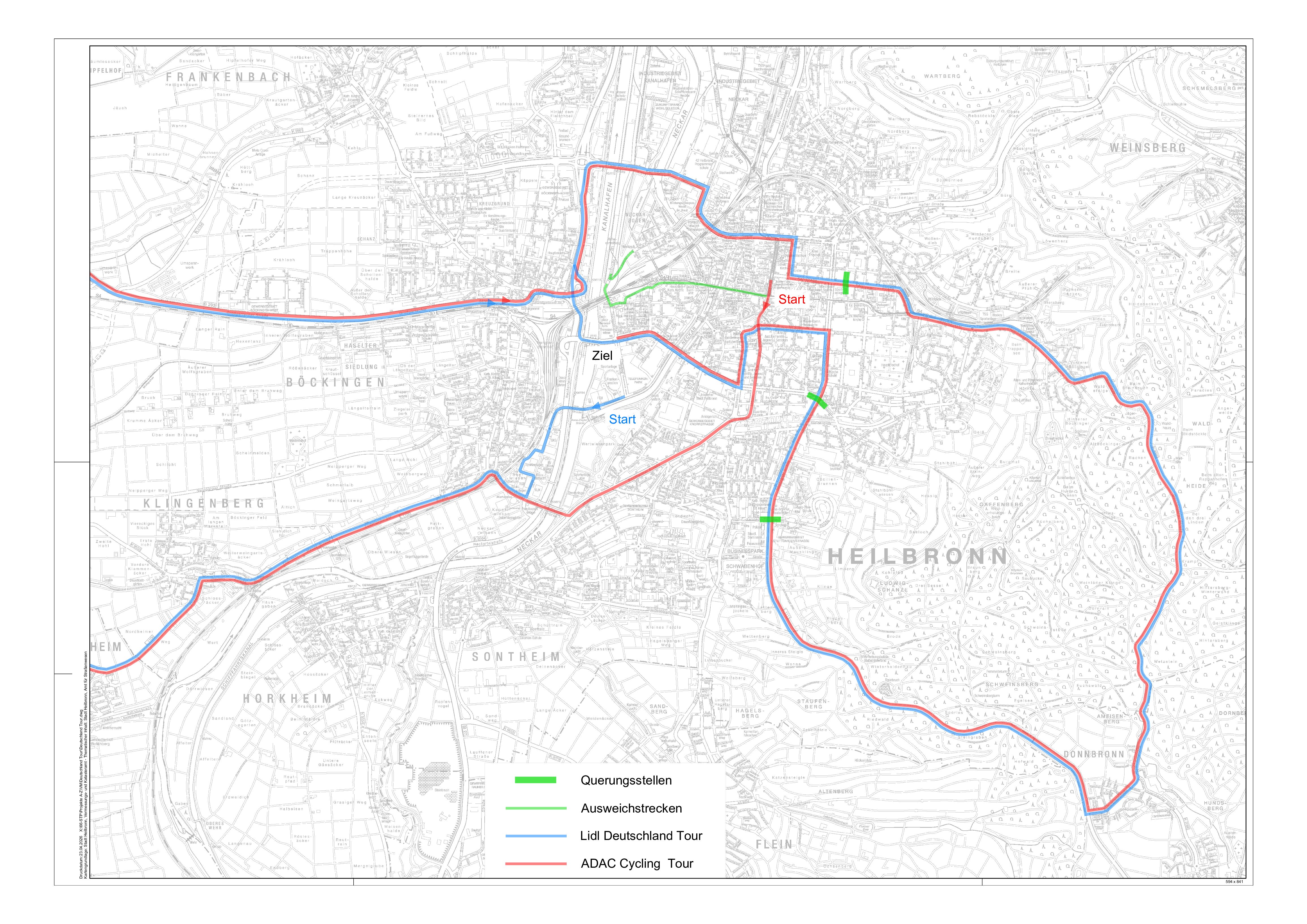 Heilbronn.| Wenn am Sonntag, 23. August, die Lidl Deutschland Tour nach Heilbronn kommt, steht die Stadt ganz im Zeichen des Radsports. Neben den Profis der Männer gehen auch U17-Fahrerinnen, ca. 3000 Freizeitsportlerinnen und -sportler sowie Kinder an den Start. Die nun festgelegte Strecke führt in einer großen Runde durch das Stadtgebiet und bietet viele Möglichkeiten, die Rennen live zu verfolgen. Für die Bevölkerung bedeutet das: Ein großes Radsportfestival vor Ort. Gleichzeitig kommt es entlang der Route zu zeitweisen Sperrungen und ganztägigen Halteverboten.