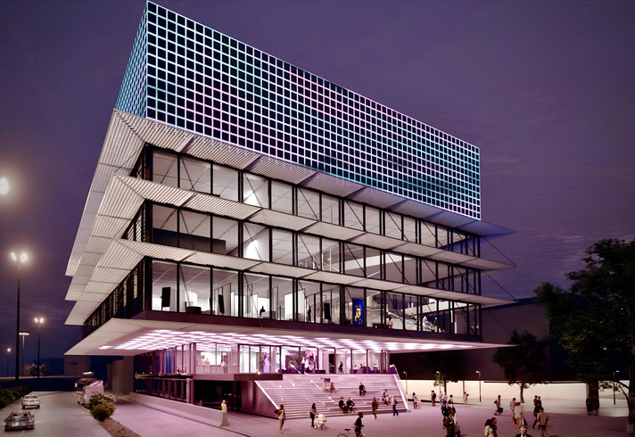 Ein besonderer Akzent liegt auch auf der Architektur des Neubaus. Der Entwurf der Arbeitsgemeinschaft Delugan Meissl Associated Architects (Wien) und Wenzel + Wenzel (Karlsruhe) sieht ein offenes, transparentes Gebäude vor, das die vielfältigen Nutzungen sichtbar miteinander verbindet. Die szenografische Ausgestaltung des Gebäudes durch das Stuttgarter Atelier Brückner bildet seine symbiotische Einheit mit der Gebäudearchitektur. Prägende Elemente sind unter anderem die Medienfassade, die das Gebäude selbst zum Kommunikationsmedium macht, sowie ein innovatives Tragwerkskonzept, das den scheinbar schwebenden Charakter des Gebäudes ermöglicht. Das Haus wird als IBA’27-Baustellenprojekt bereits während der Bauphase neue Perspektiven auf zeitgemäßen Kulturbau und die hochspannende Tragkonstruktion sichtbar machen.