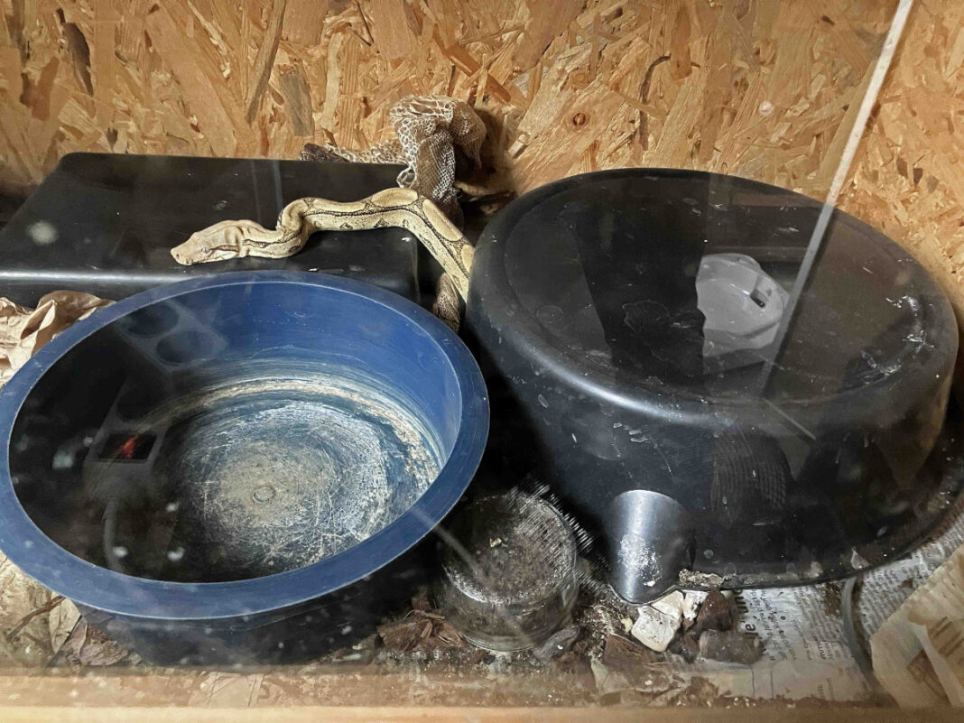 Weitere Tiere traf die Veterinärin abgemagert und lethargisch an. Da die Haltungsbedingungen inakzeptabel waren, ordnete sie die Fortnahme zum Schutz der Schlangen an. Wegen des Verdachts auf Straftaten gegen den Tier- und Artenschutz hat die Stadt die Polizei hinzugezogen und bringt den Fall zur Anzeige.