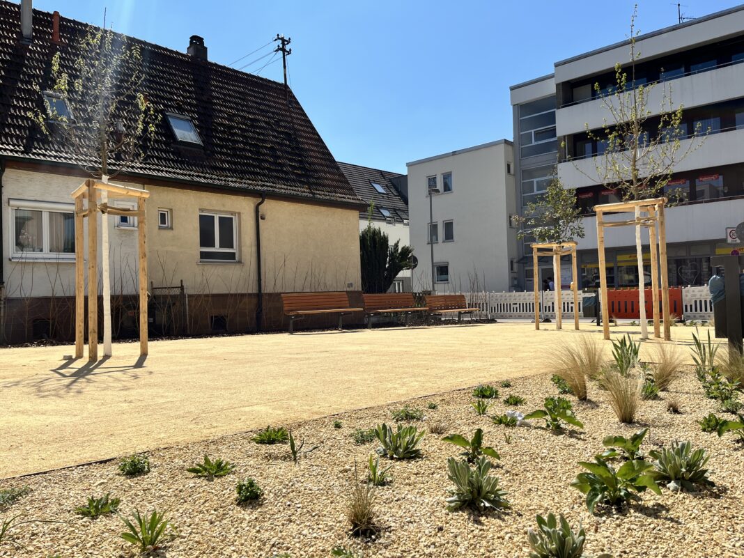 Ostfildern.| In der Hindenburgstraße in Nellingen ist ein neuer Quartiersplatz fertiggestellt worden. In den vergangenen Monaten ist ein moderner, begrünter Aufenthaltsbereich entstanden, der künftig zur Belebung des Stadtteils beitragen und zugleich ein Zeichen für klimaangepasste Stadtentwicklung setzen soll. Die offizielle Eröffnung mit Inbetriebnahme des ersten öffentlichen Trinkbrunnens Ostfilderns findet am 9. Mai statt – dem bundesweiten Tag der Städtebauförderung.
